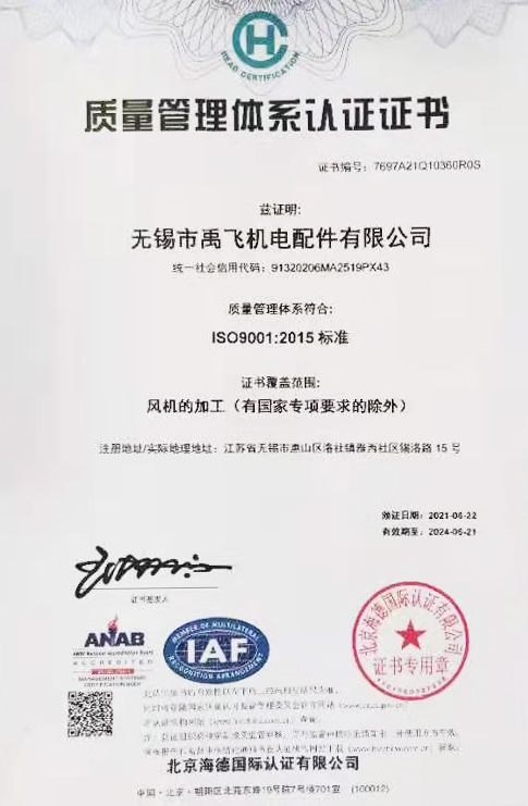 公司執行GB/T22712-2008《變電機用G系列冷卻風機技術規范》國家標準,并且通過了ISO 9001:2015質量管理體系認證、ISO 14001:2015環境體系認證,已擁有年產各類風機、冷卻器十萬臺套的較大生產規模,產品遠銷東南亞等國家與地區。